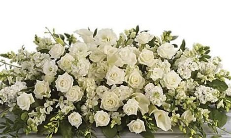 all white casket sprayThis lovely arrangement of spring flowers shows there is always hope.
